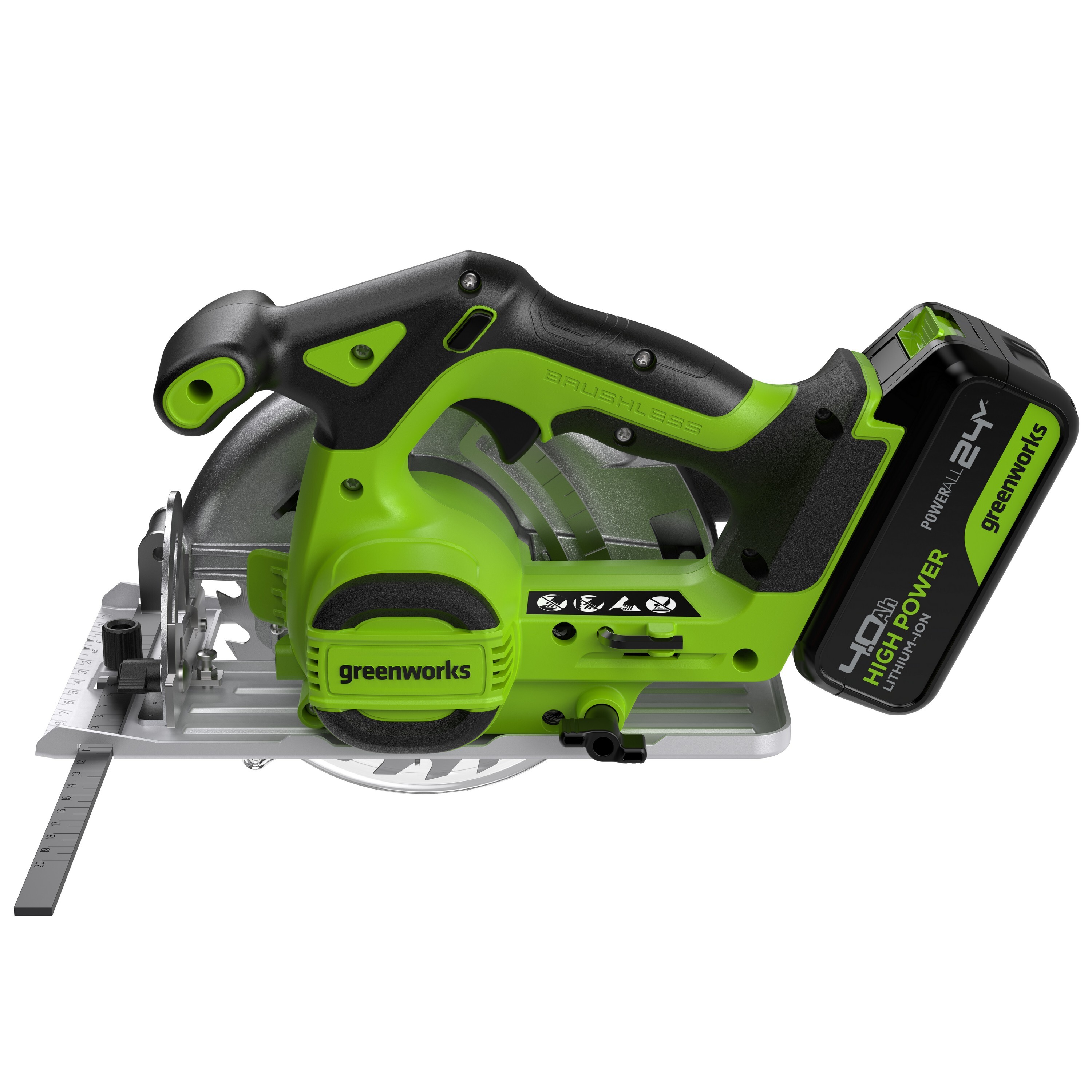 Дисковая пила акк. Greenworks GD24CS165, 24V,б/щет,165х20мм, 4800 об/мин, рез 57мм,1х4Ач,ЗУ,кор (1501607CUB)