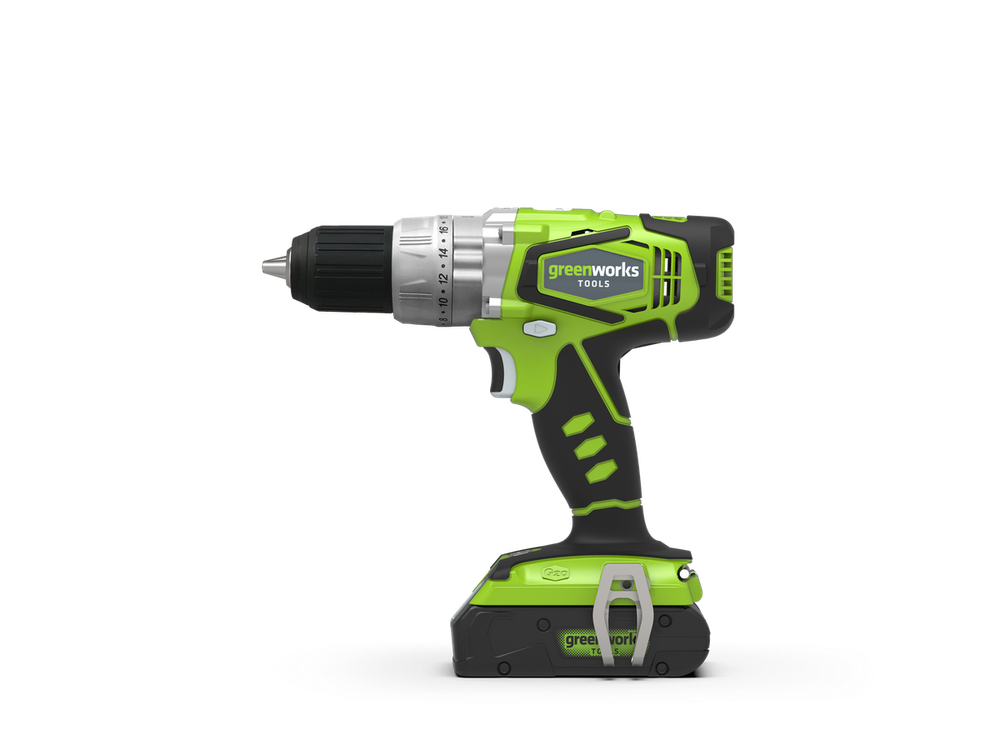 Дрель работает от аккумулятора 24 В, что на 33% мощнее обычного 18-ти вольтового стандарта на рынке дрелей. Важным плюсом этого аккумулятора является то, что он совместим с более 20 устройствами линейки Greenworks G-24 24V.