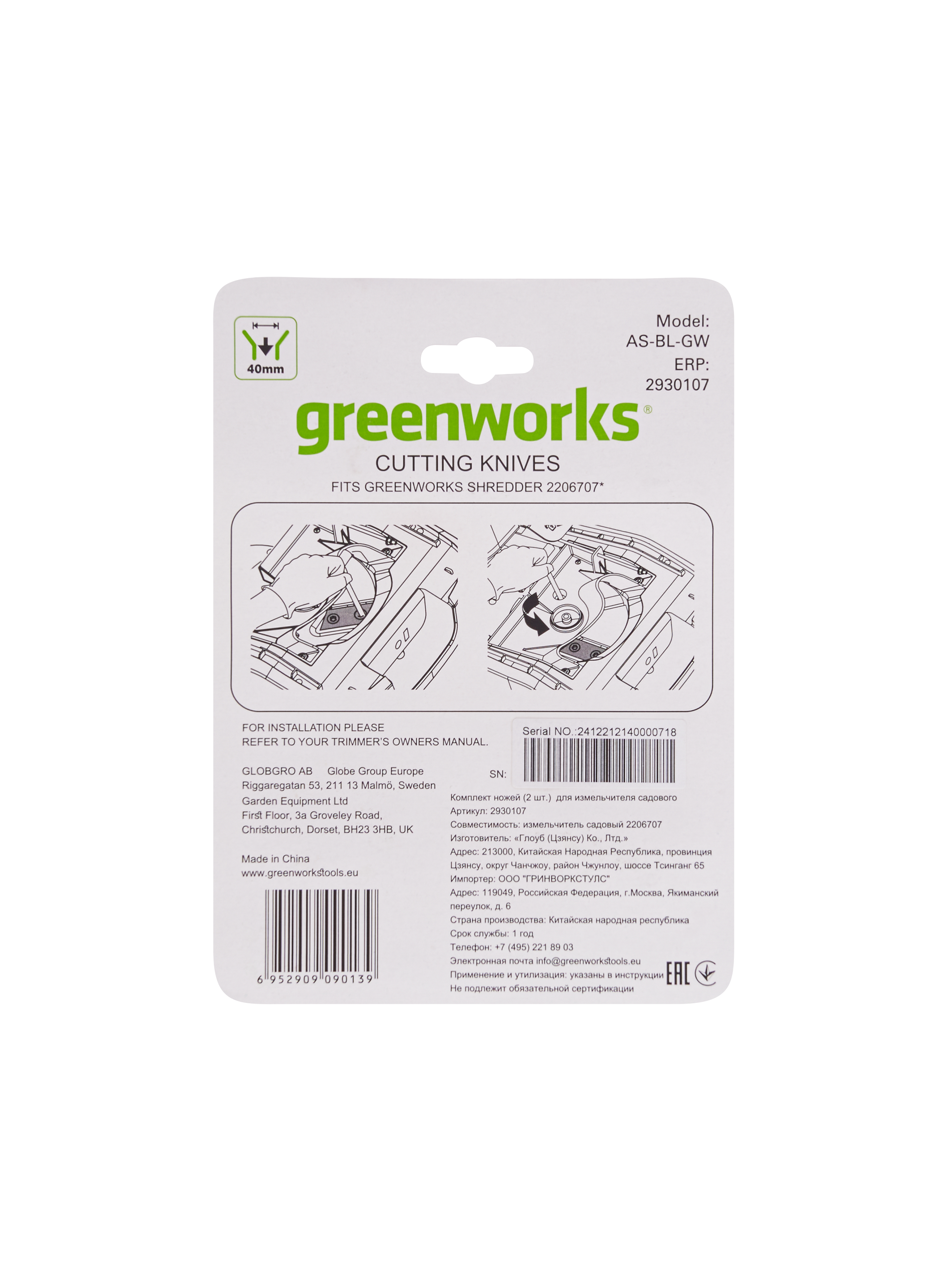 Комплект ножей (2 шт.) для измельчителя садового Greenworks. Внимание! Измельчитель садовый предназначен для измельчения волокнистых и древесных садовых отходов, например веток деревьев и кустов, для их дальнейшего компостирования. Измельчитель НЕ предназначен для измельчения листьев и травы! Совместимость: 2206707