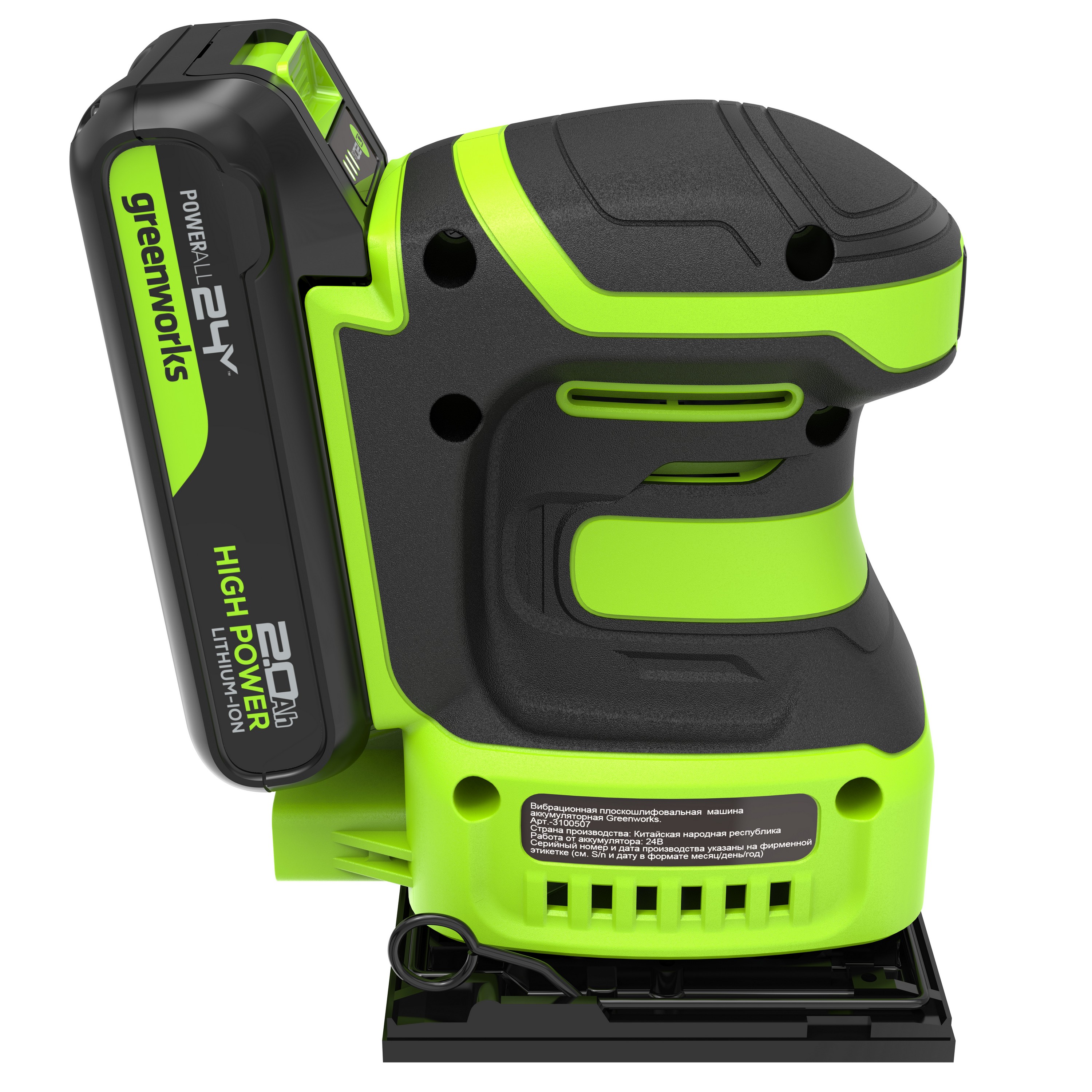 Плоская шлифмашина акк. Greenworks G24SS14, 24V, 115x140мм, 5500 об/мин, ампл. 1,6 мм,1х2Ач,ЗУ,кор (3100507CUA)
