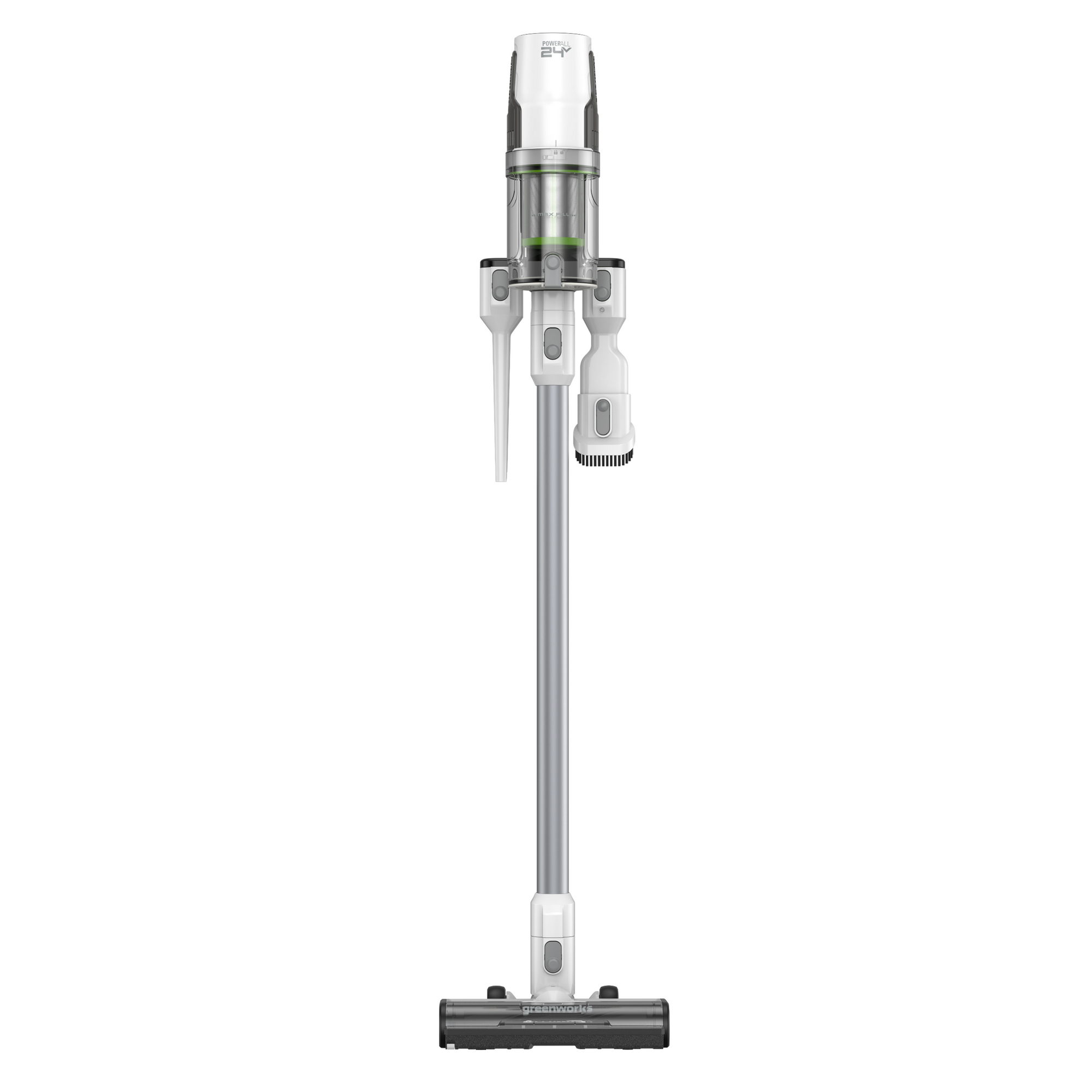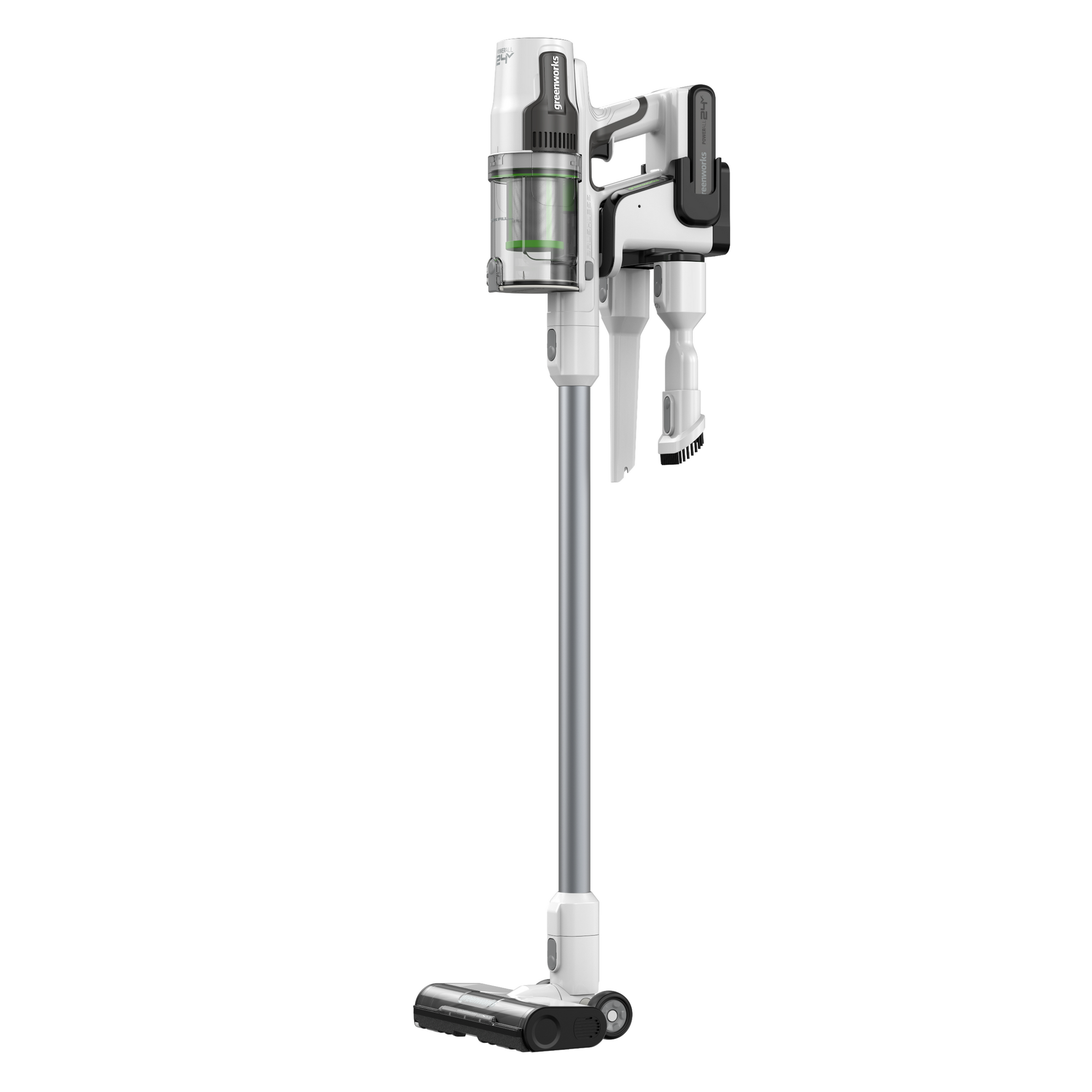 Пылесос вертикальный акк. Greenworks SV24360, 24V, б/щет, 250 Вт, 17 кПа, электрощетка, 2 насадки, LED, белый+серебро, 1х4Ач и ЗУ (4702107UB)