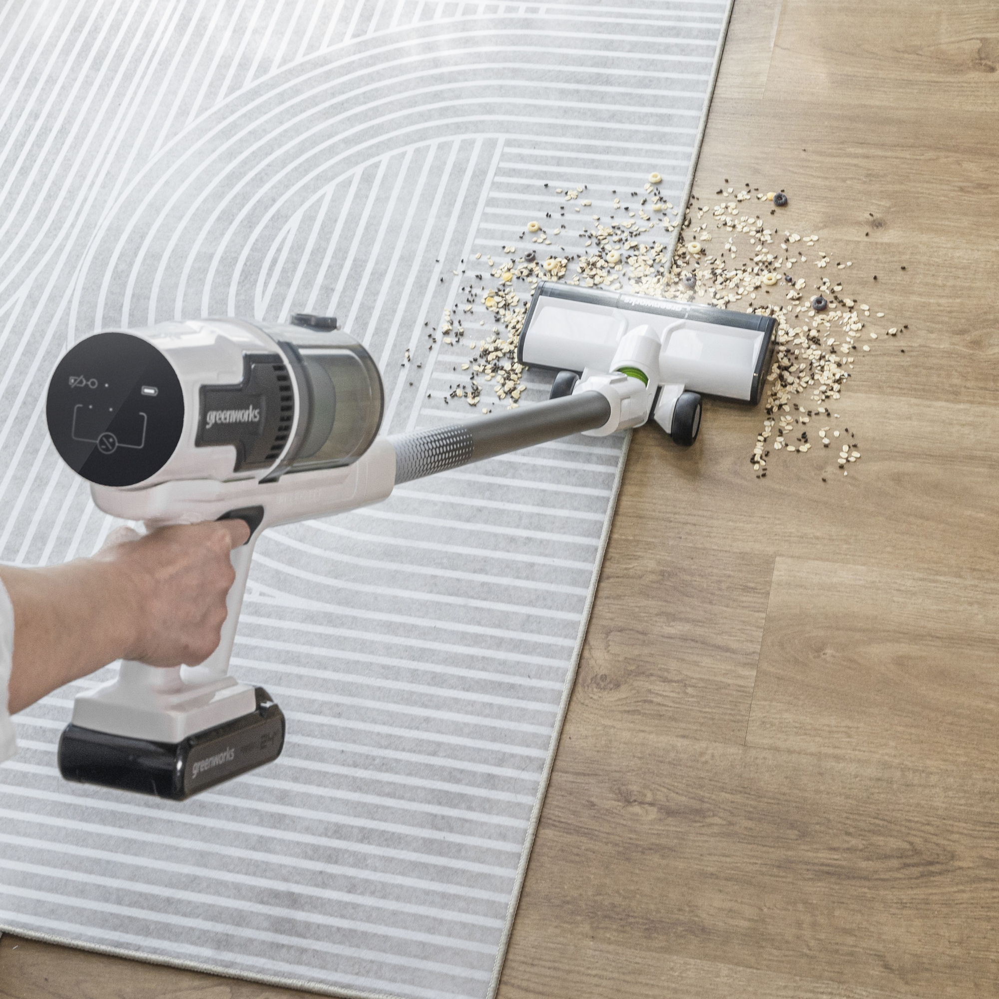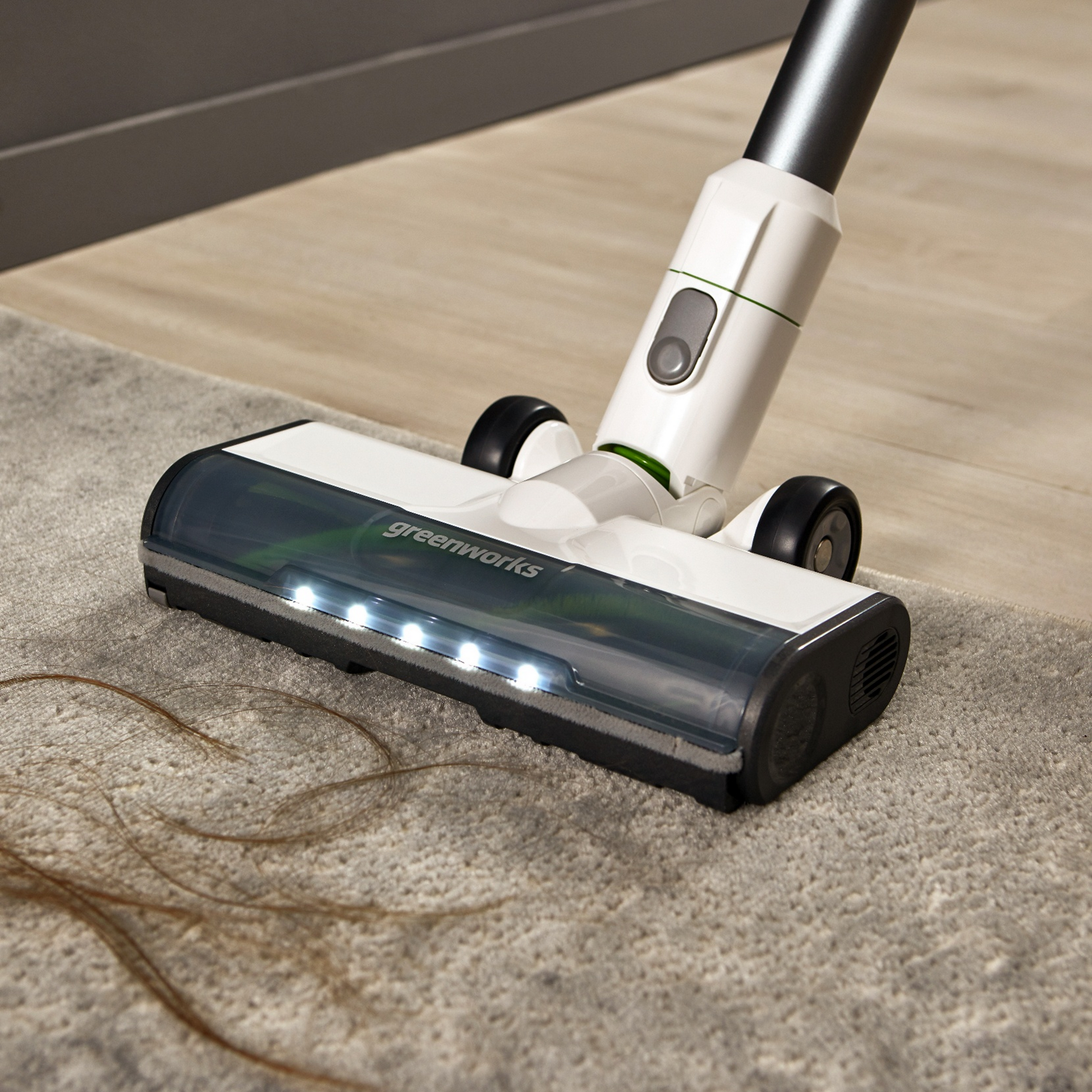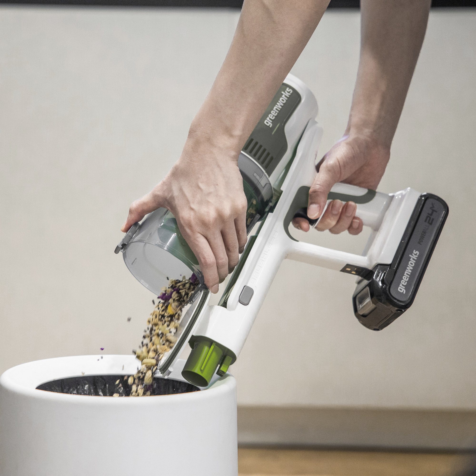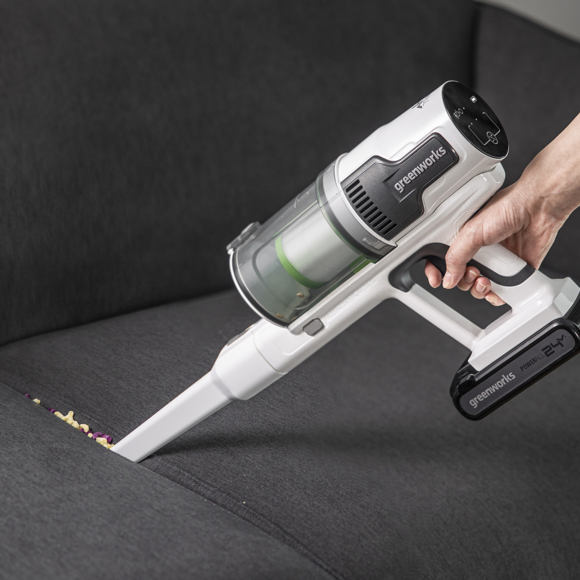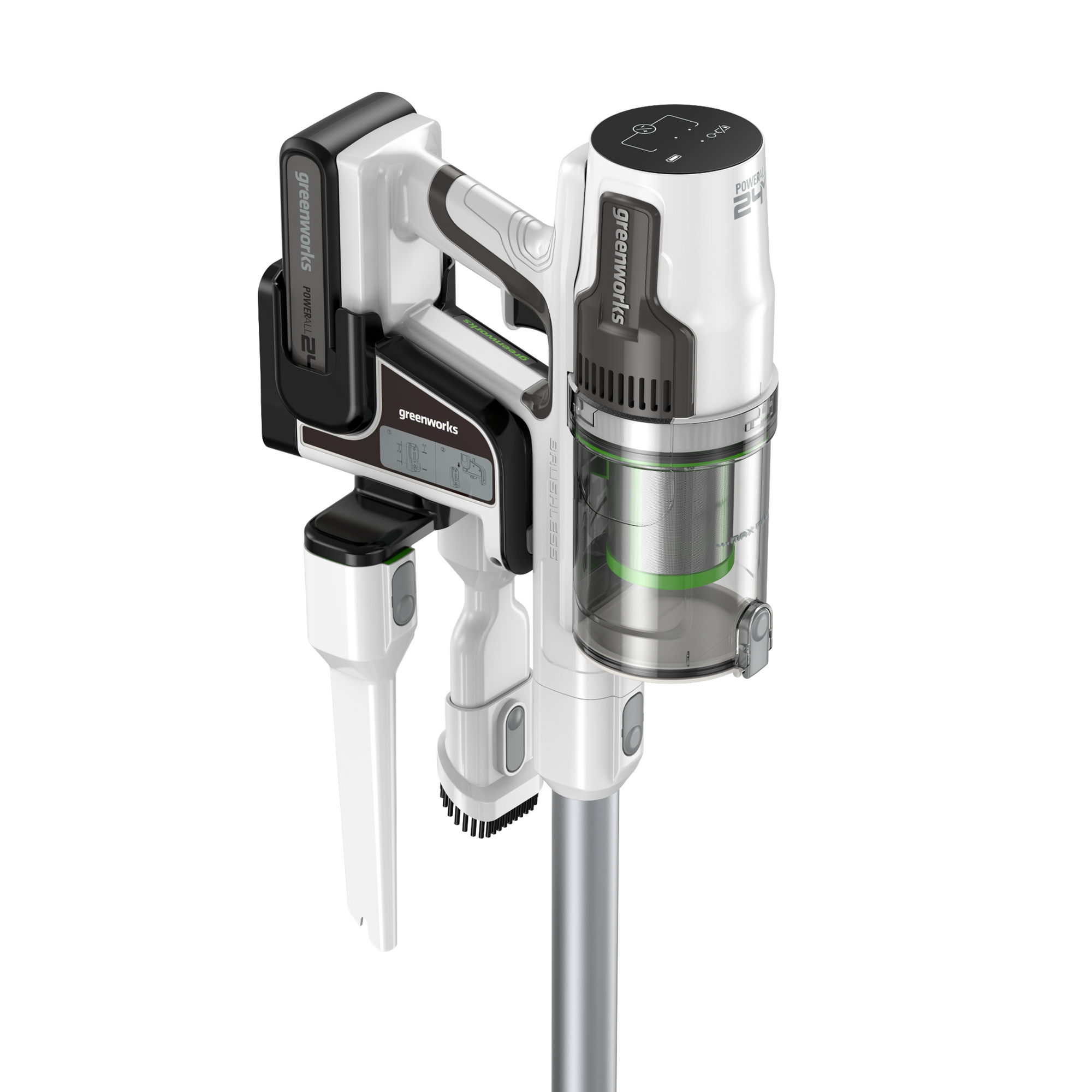 Вертикальный аккумуляторный пылесос Greenworks SV24360 представляет новое поколение премиальных вертикальных аккумуляторных пылесосов 24V.