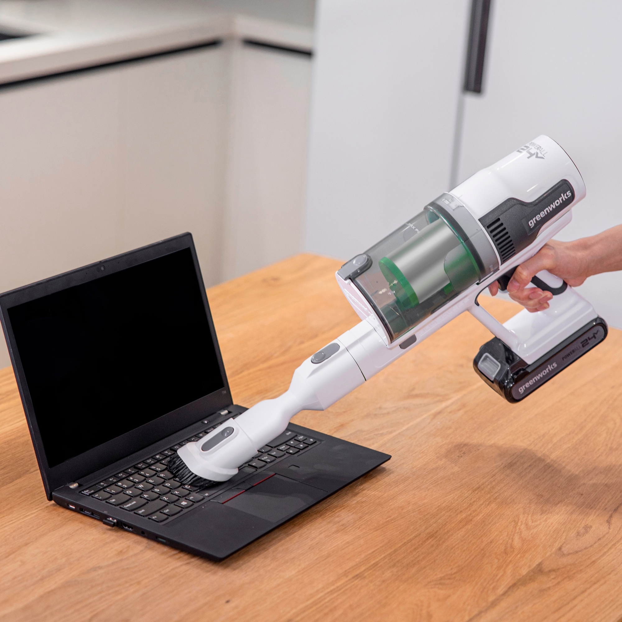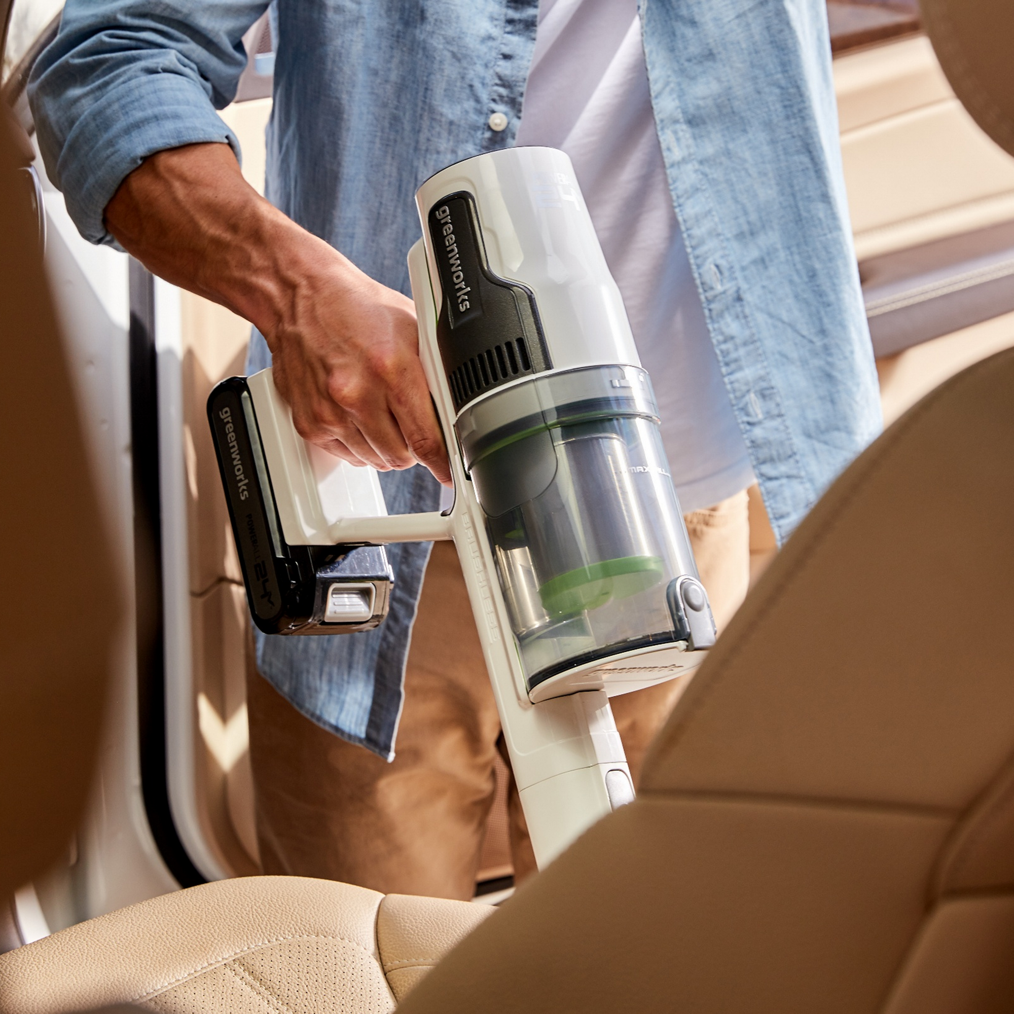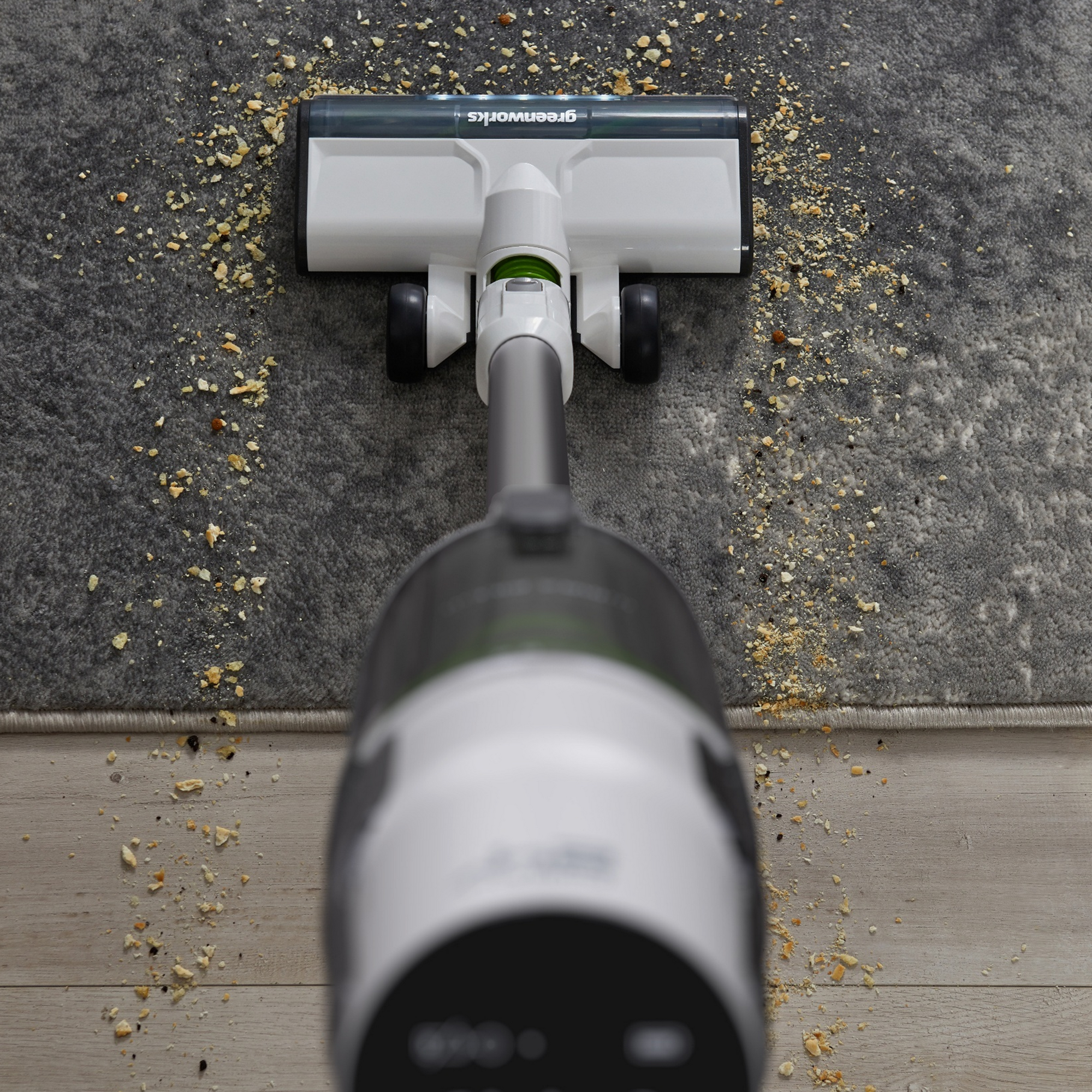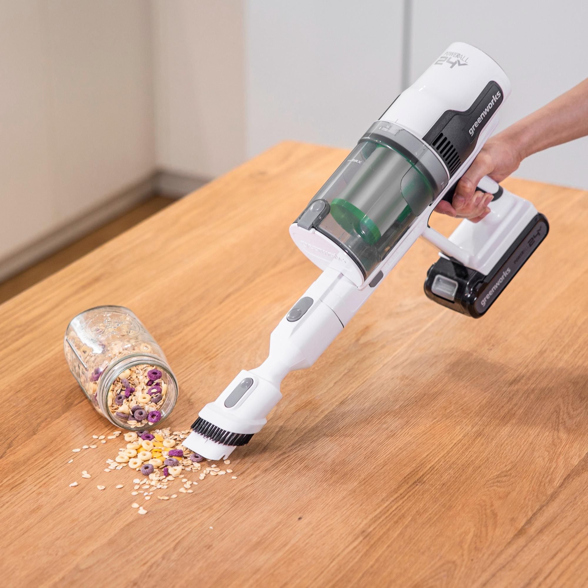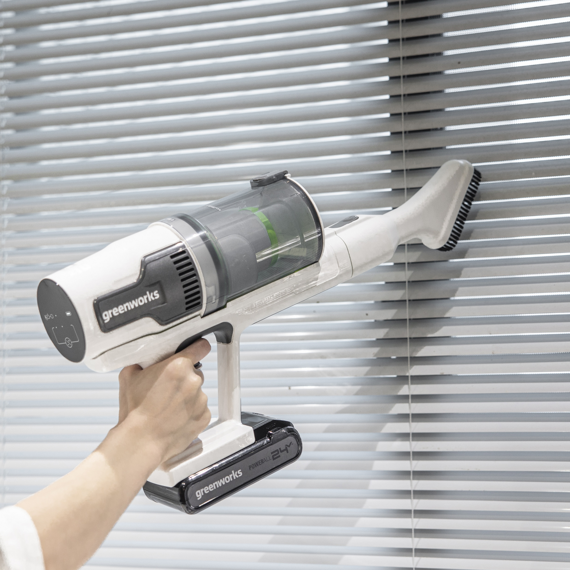 Вертикальный аккумуляторный пылесос Greenworks SV24360 представляет новое поколение премиальных вертикальных аккумуляторных пылесосов 24V.