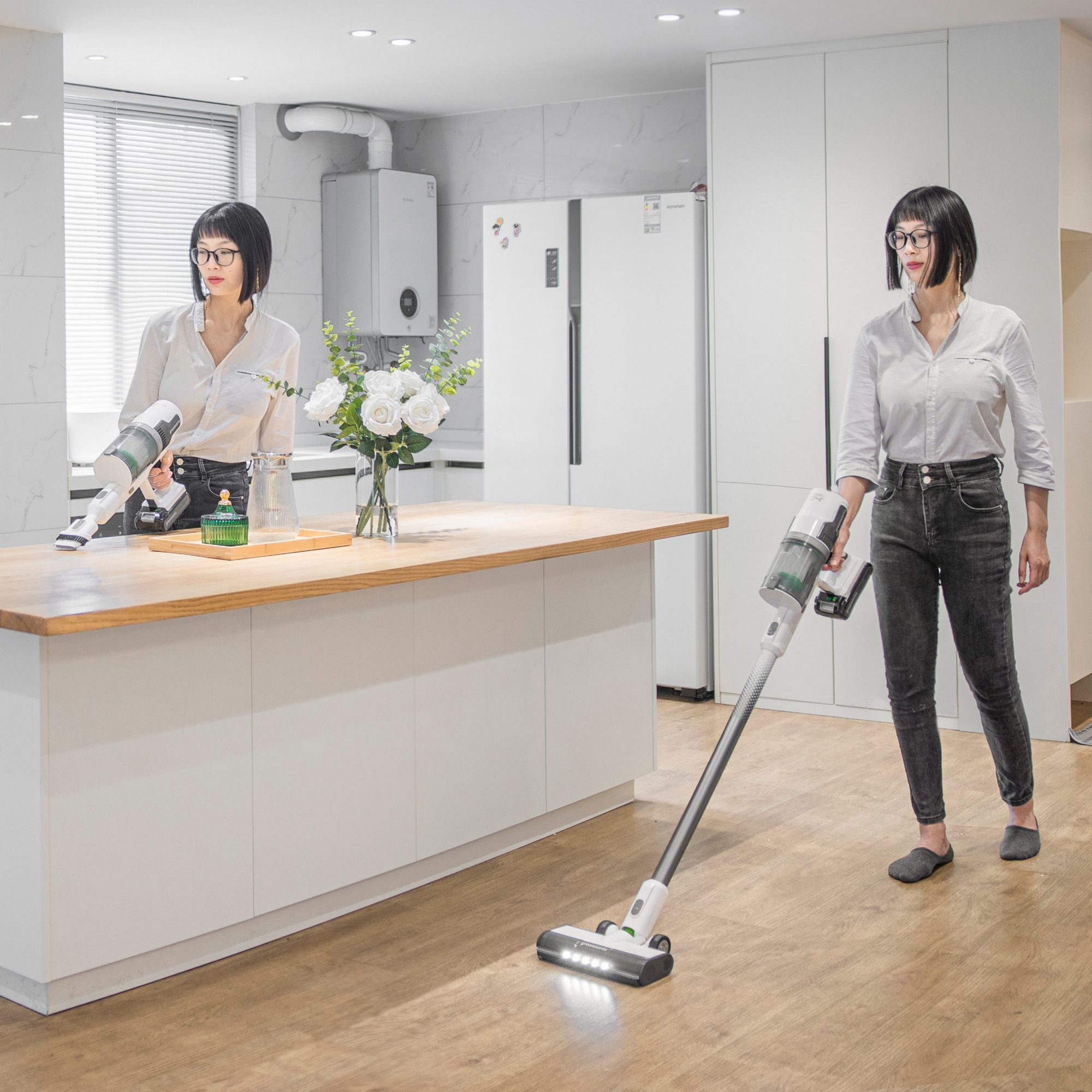 Электрощетка оснащена фронтальной LED-подсветкой, которая помогает увидеть загрязнения, обычно скрытые от невооружённого взгляда, а также легко провести уборку в слабоосвещённых местах, например под диваном.