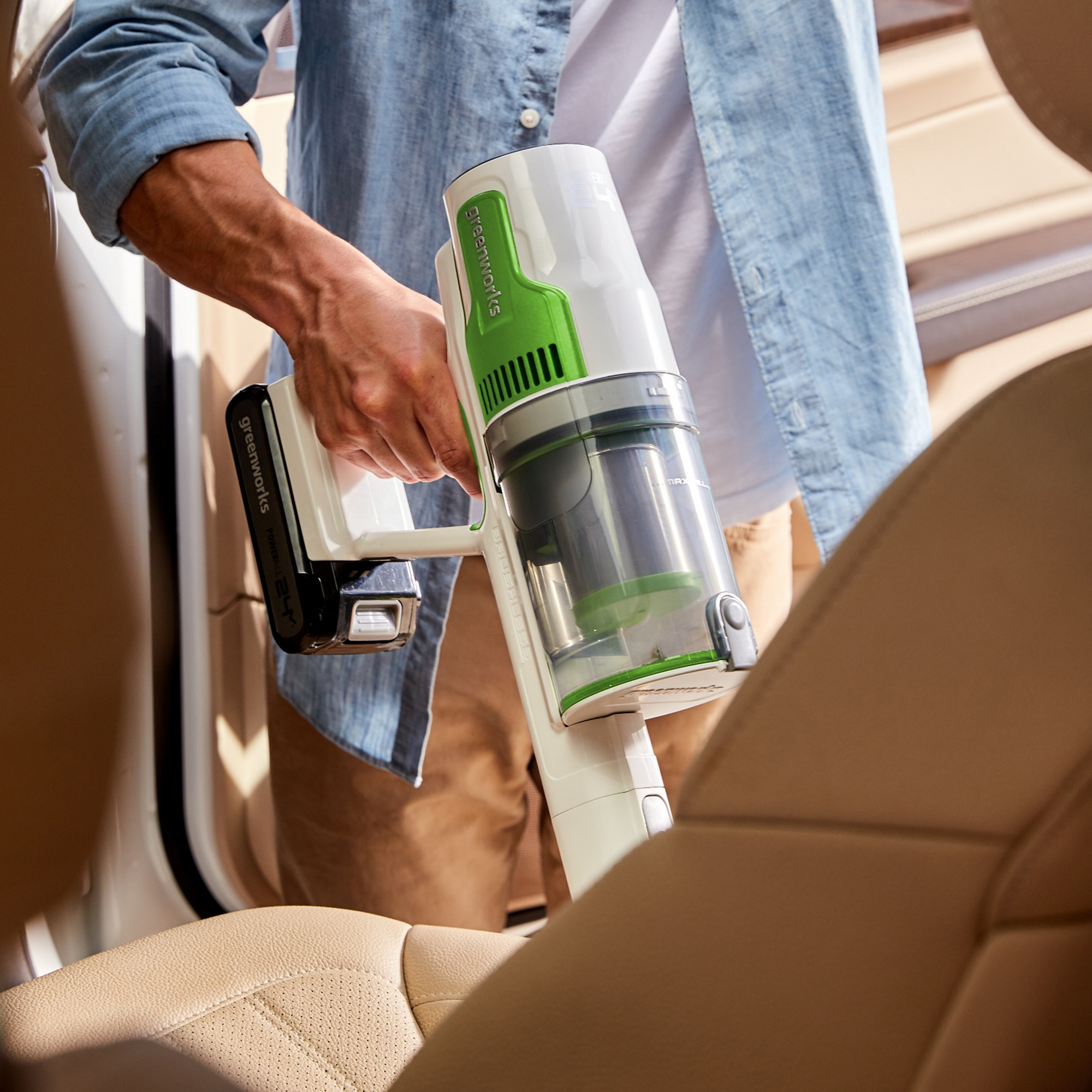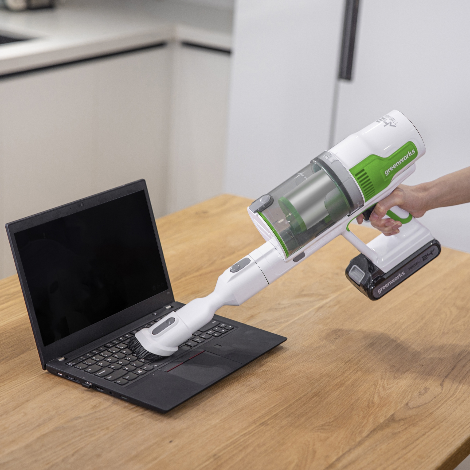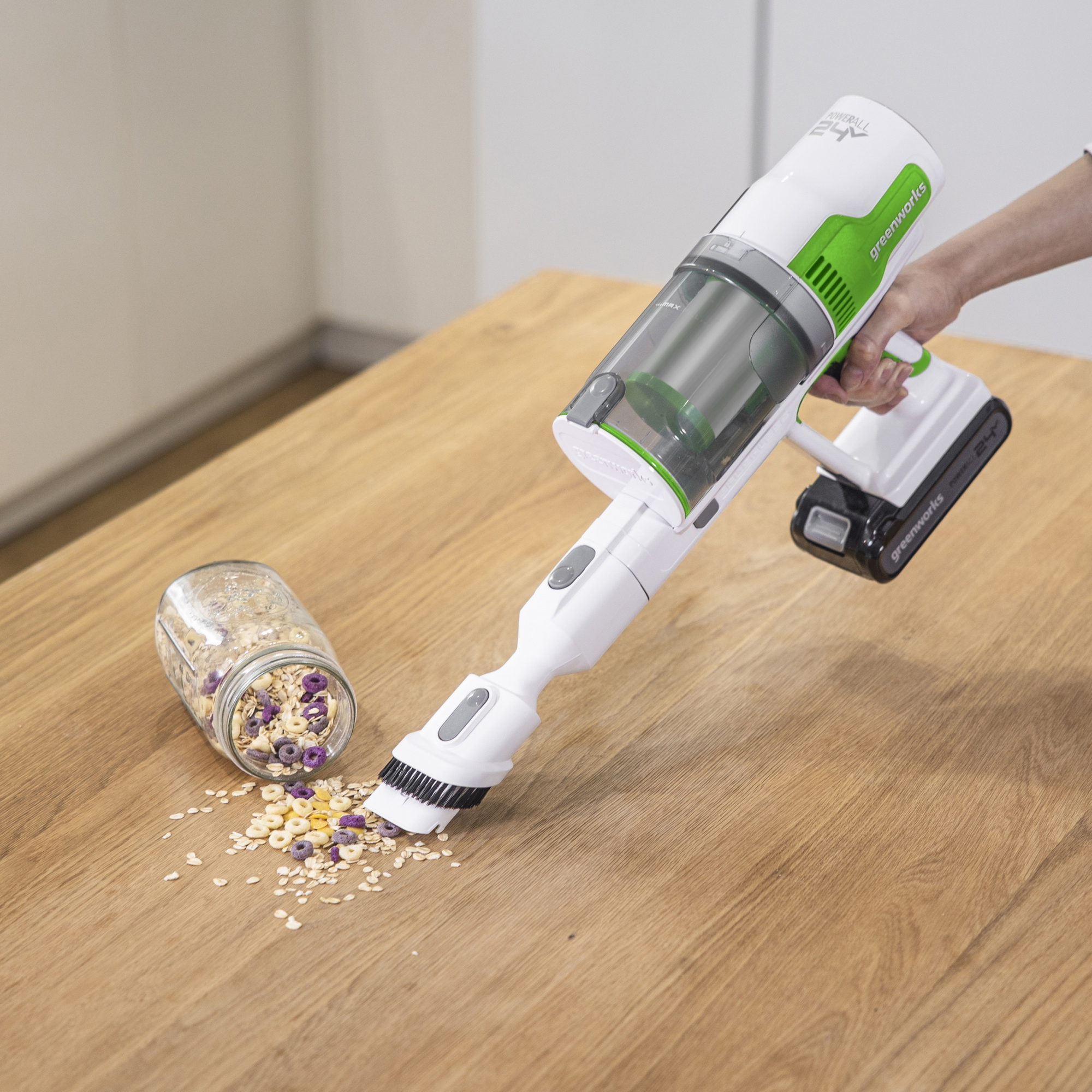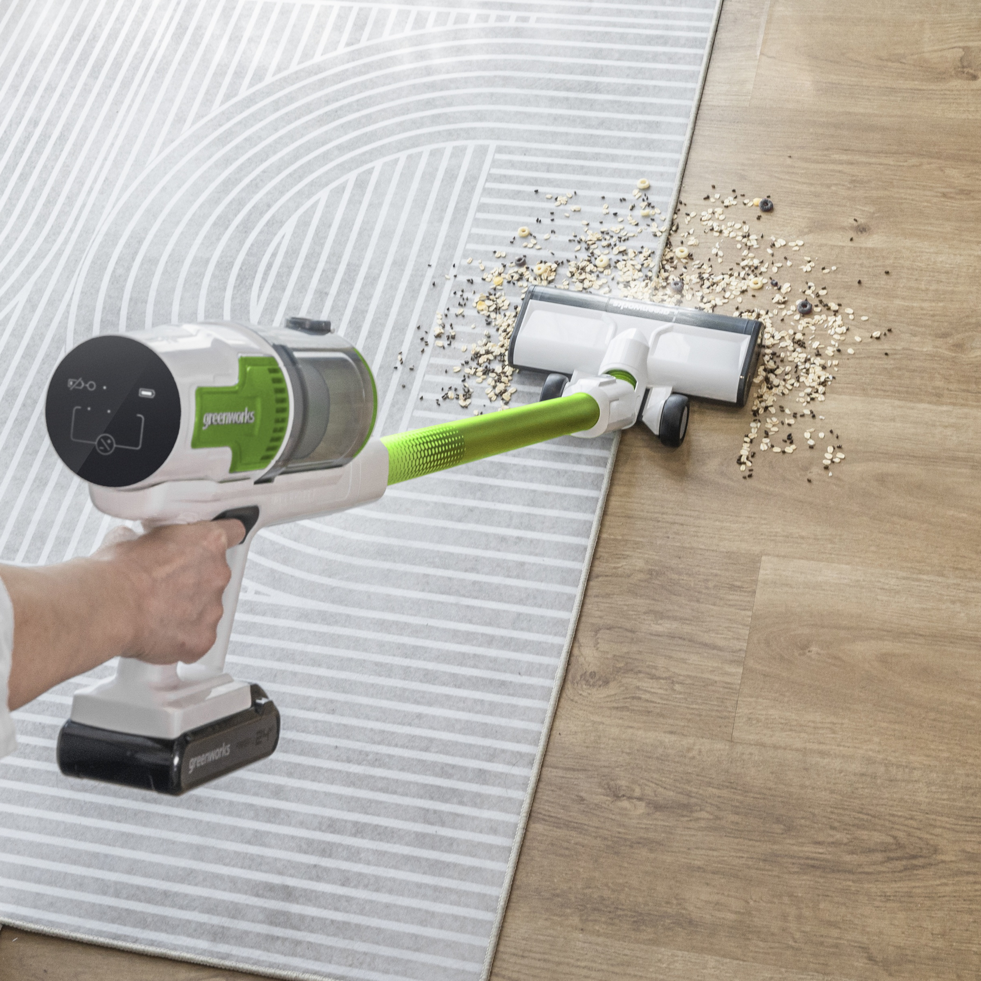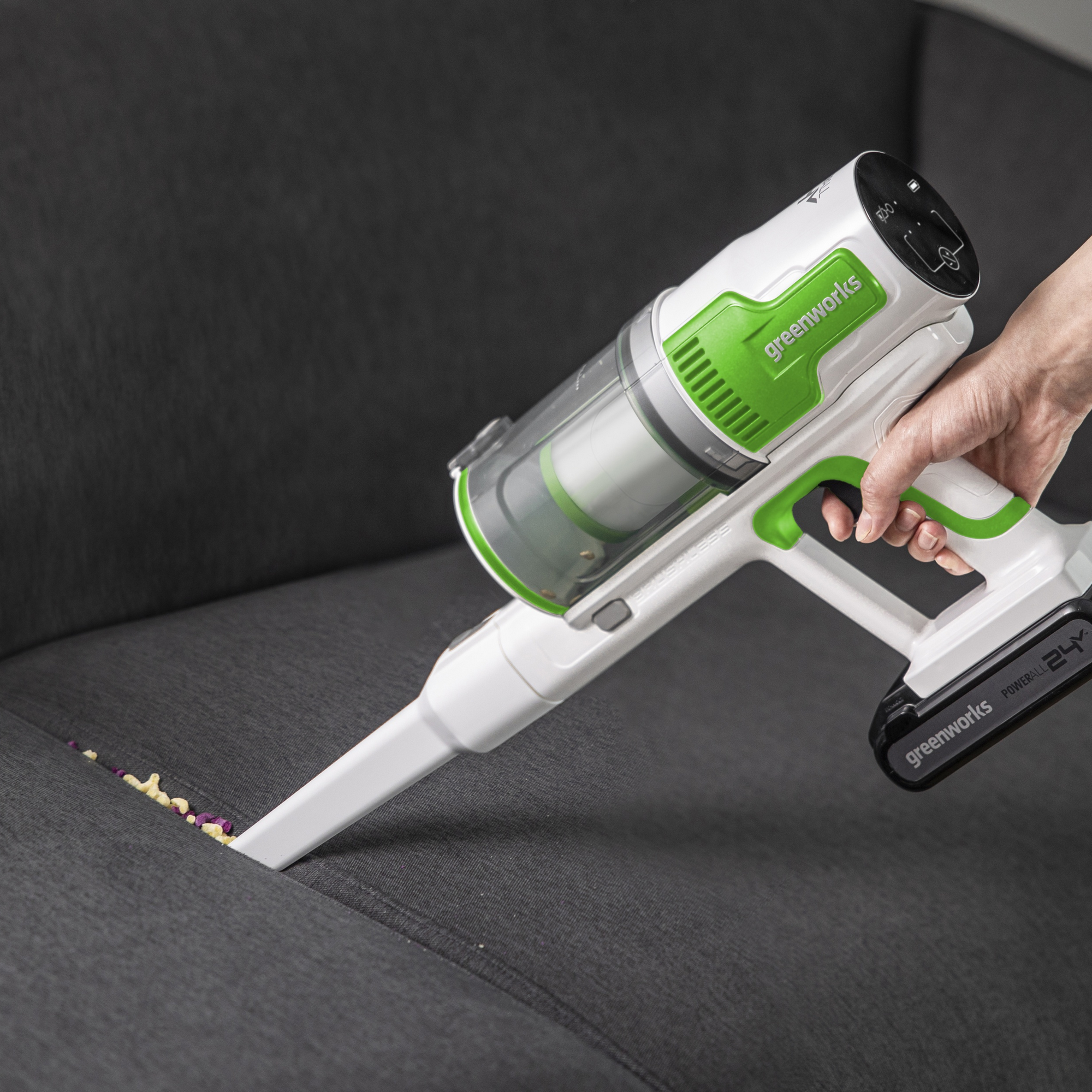 Вертикальный аккумуляторный пылесос Greenworks SV24532 представляет новое поколение премиальных вертикальных аккумуляторных пылесосов 24V.