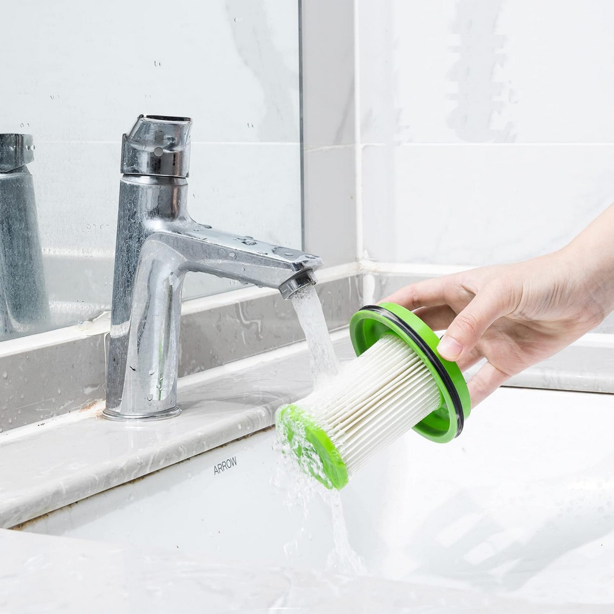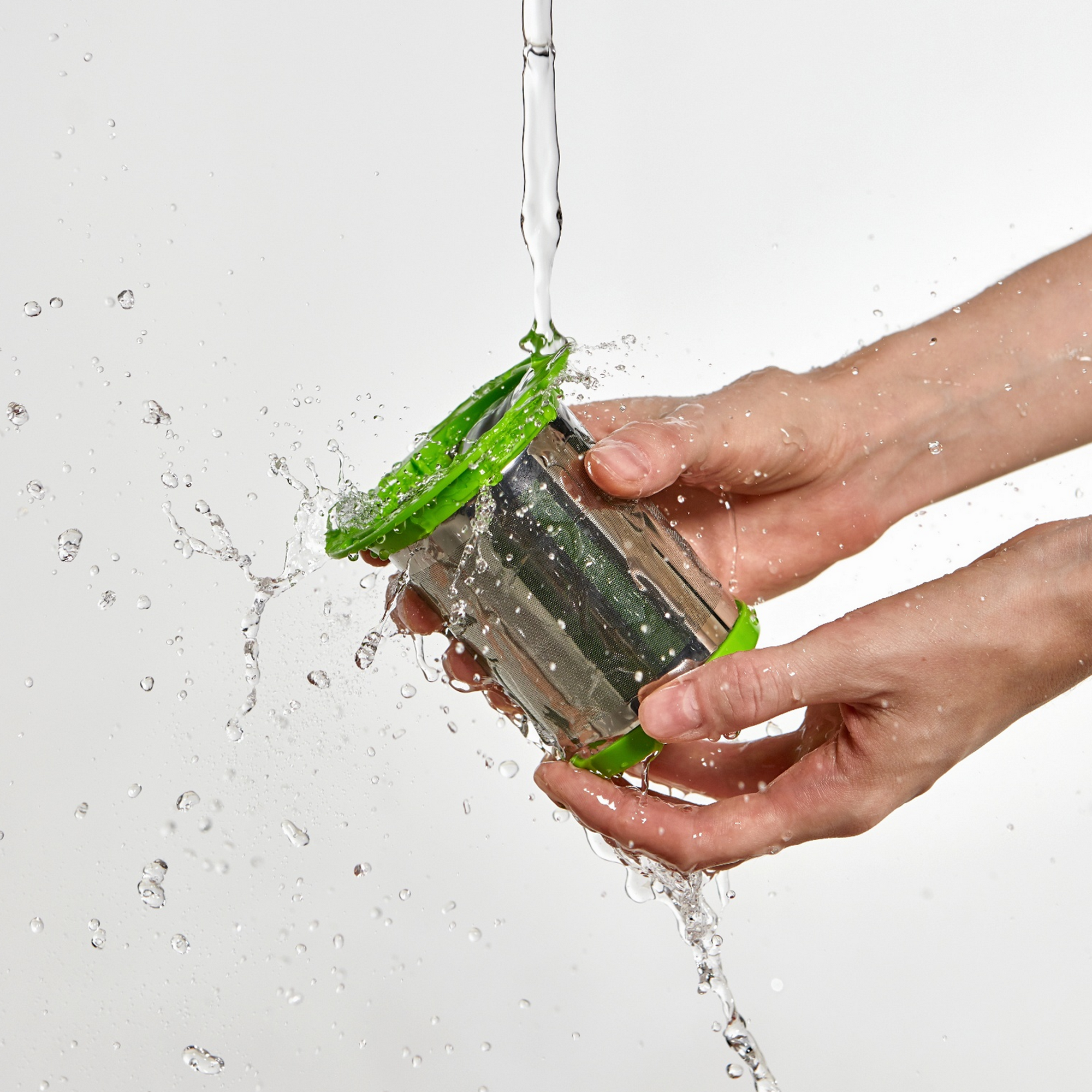 Предварительный фильтр из нержавеющей стали защищает основной от воздействия крупных частиц мусора. Фильтры можно мыть проточной водой.