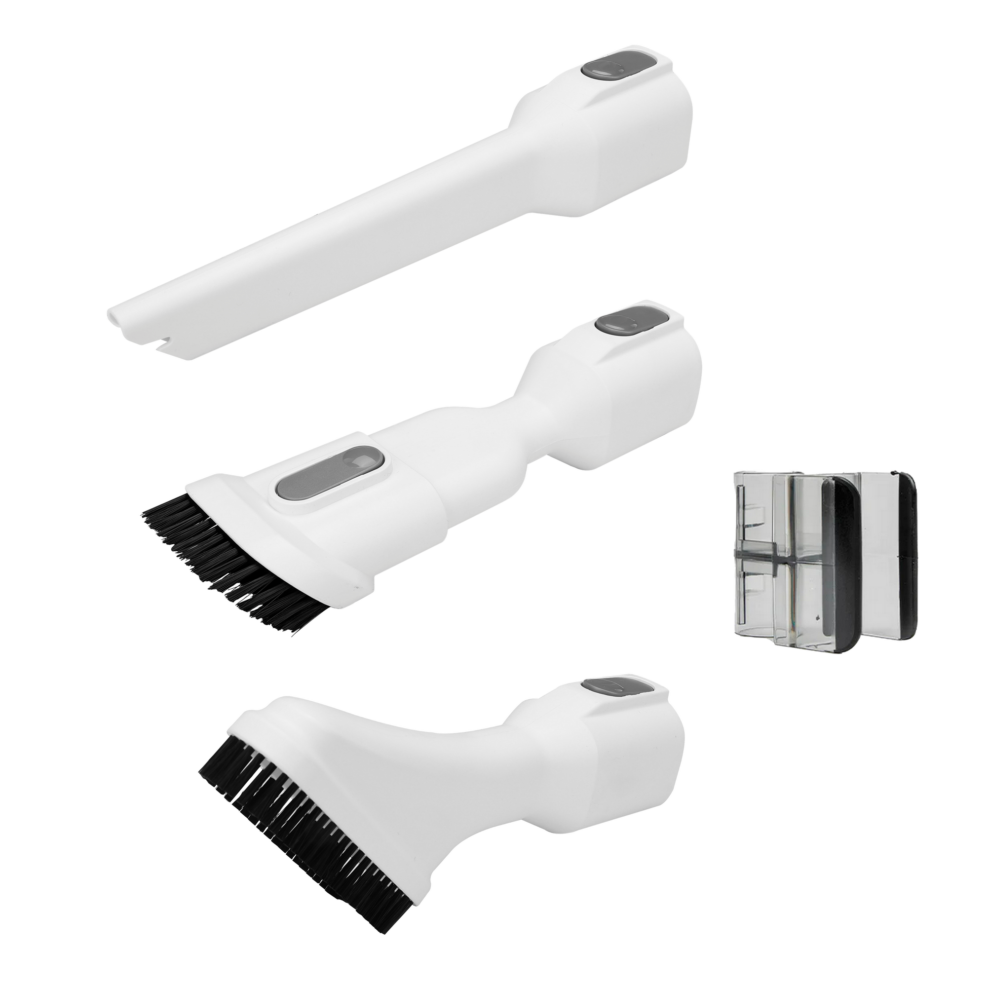 В комплект поставки входит 4 сменные насадки: универсальная электрощетка для качественной очистки твердых полов и ковровых покрытий; щелевая насадка, насадка для уборки 2-в-1, насадка для деликатной уборки.