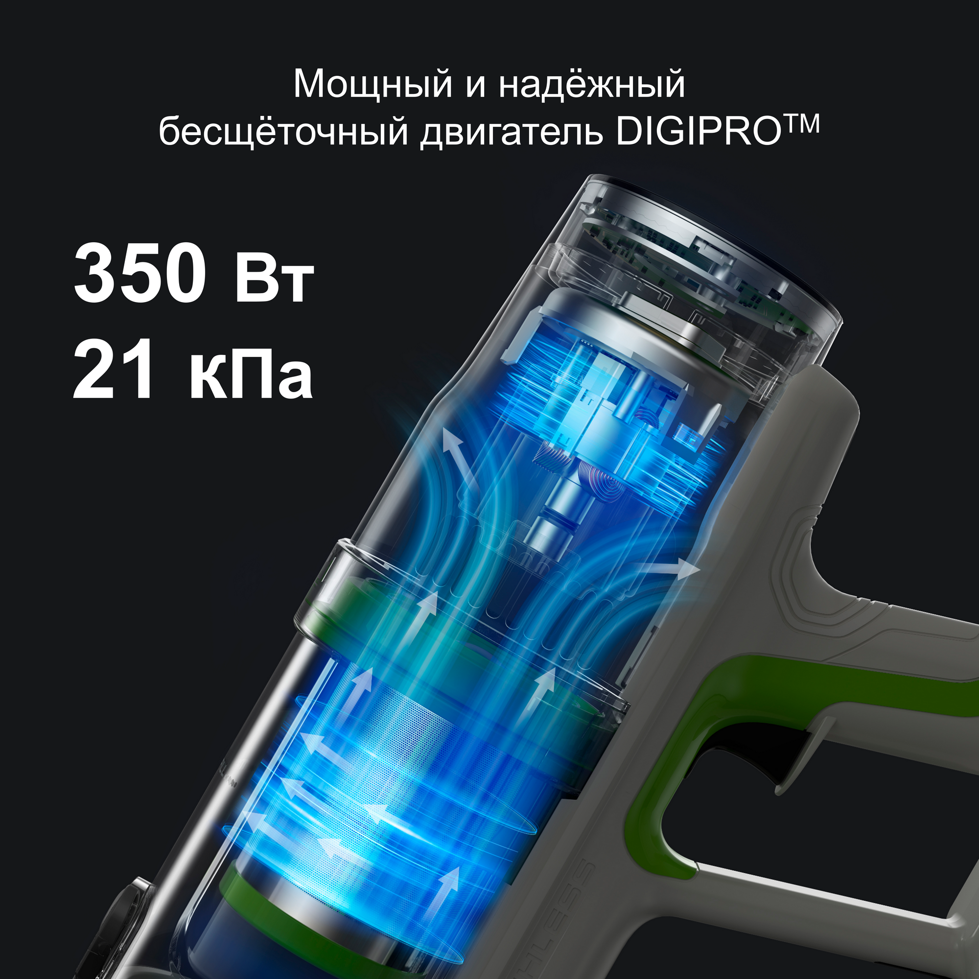 Построен на основе нового производительного и экономичного бесщеточного двигателя DigiPro™ мощностью 350 Вт с инновационной системой всасывания.