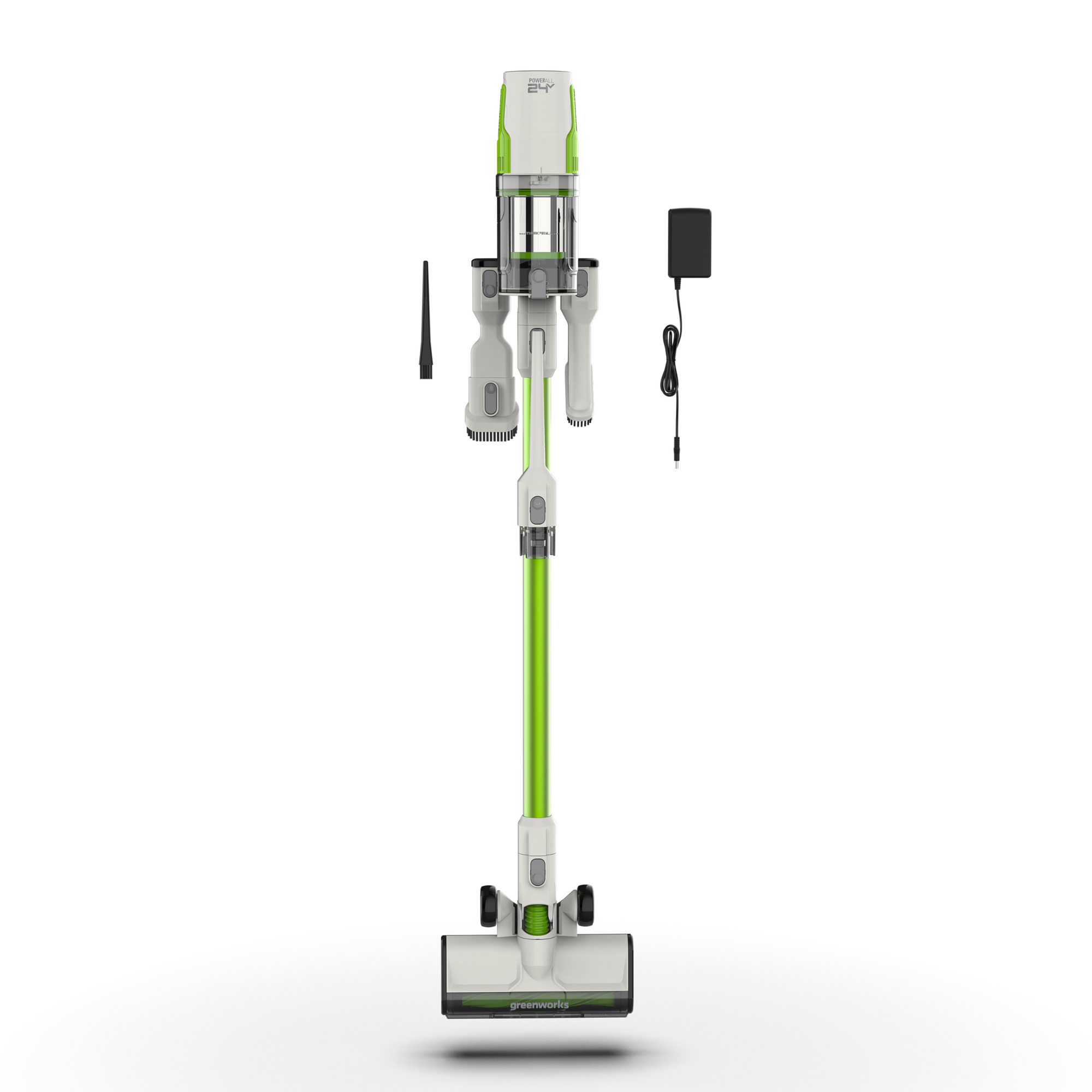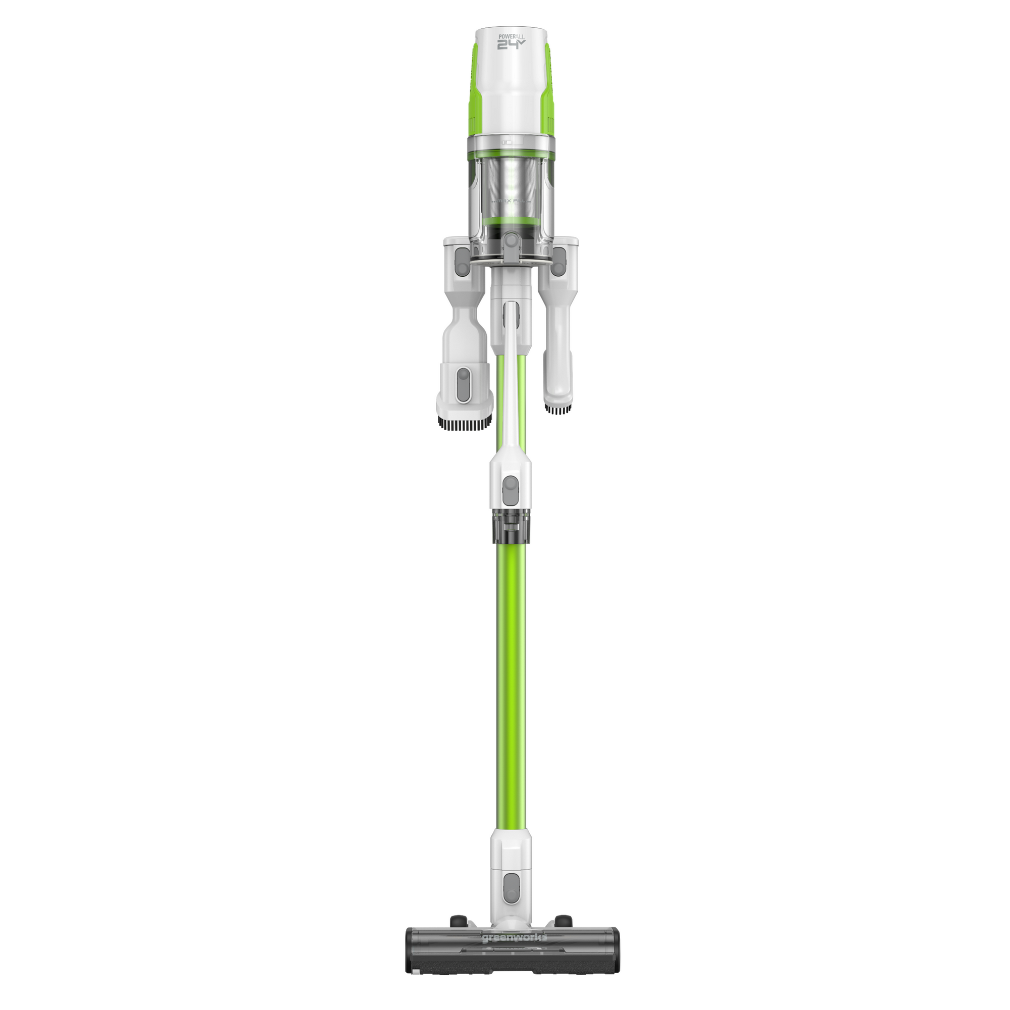 Пылесос вертикальный акк. Greenworks SV24532, 24V, б/щет, 350 Вт, 21 кПа, электрощетка, 3 насадки, LED, белый+зеленый, 1х4Ач и ЗУ (4702007UB)