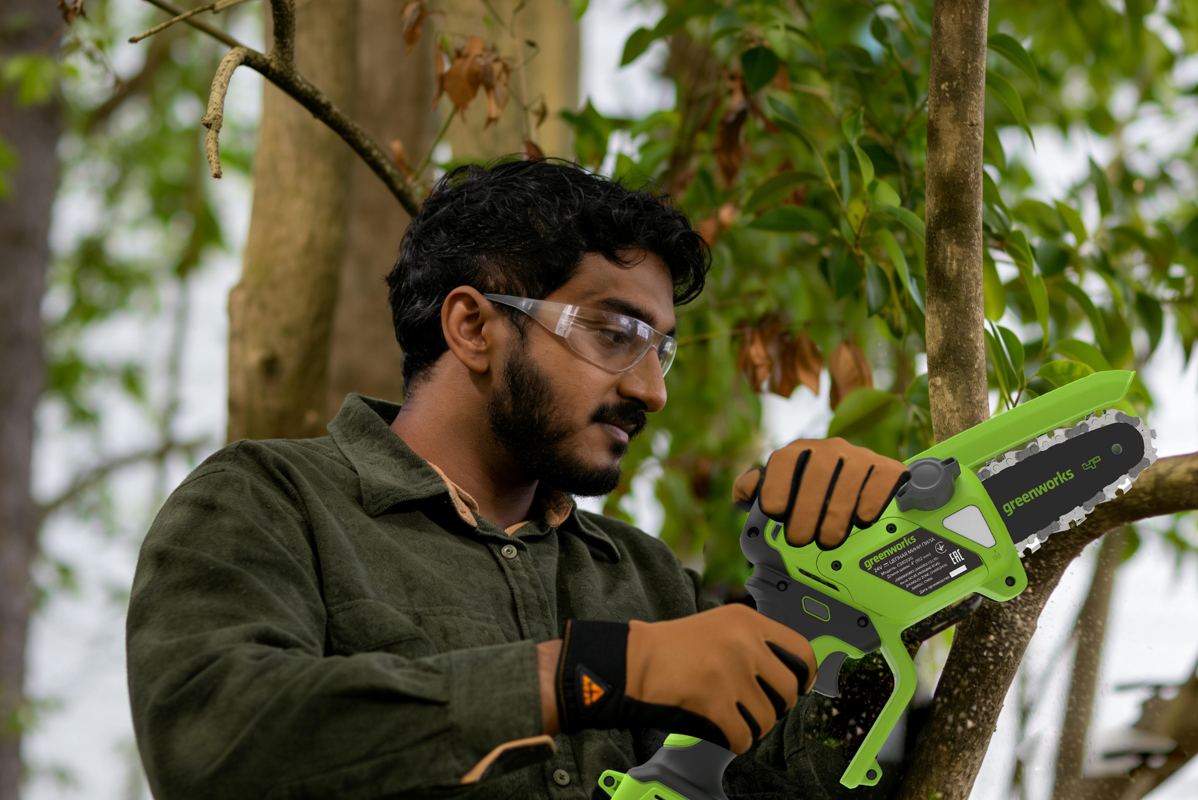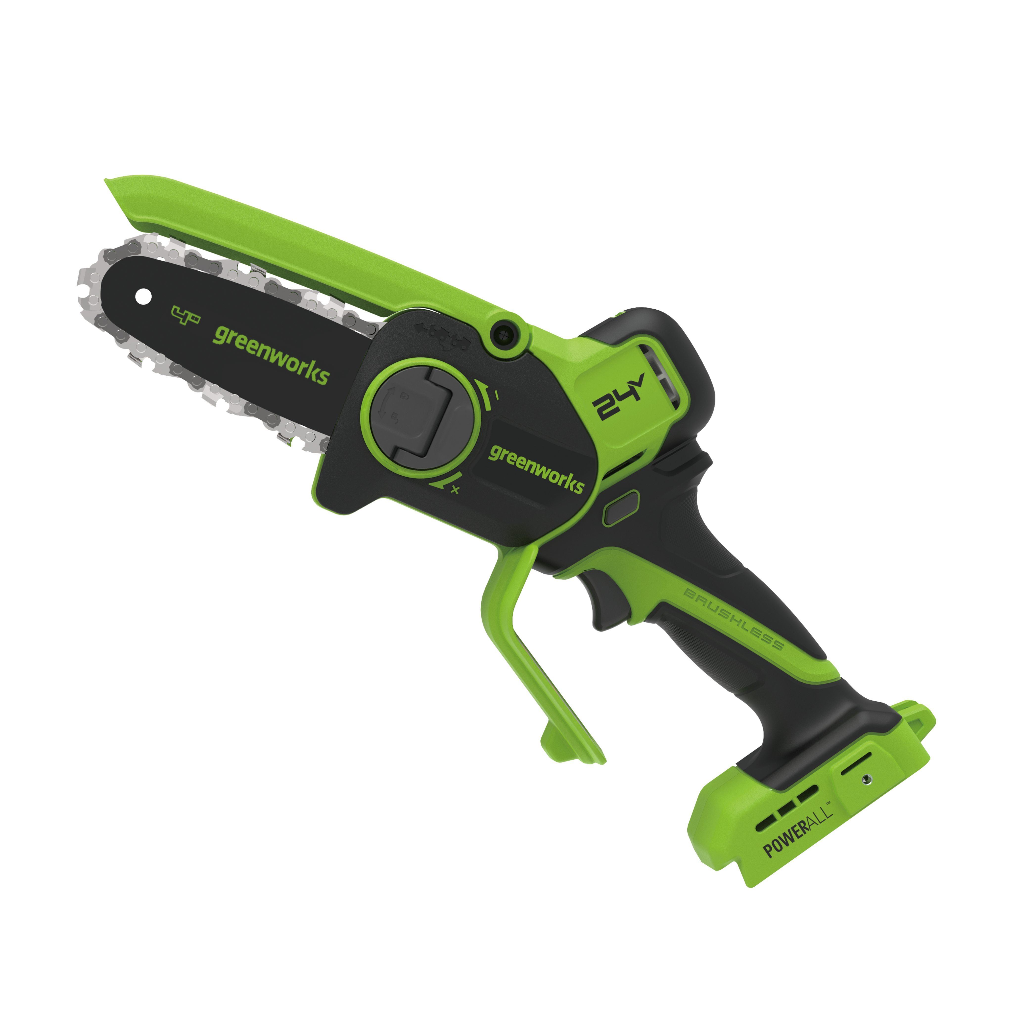Цепная мини пила Greenworks CS2410A, построена на основе производительного и надёжного бесщёточного двигателя DigiPro™, который эффективно использует энергию аккумулятора и не теряет мощность под нагрузкой.