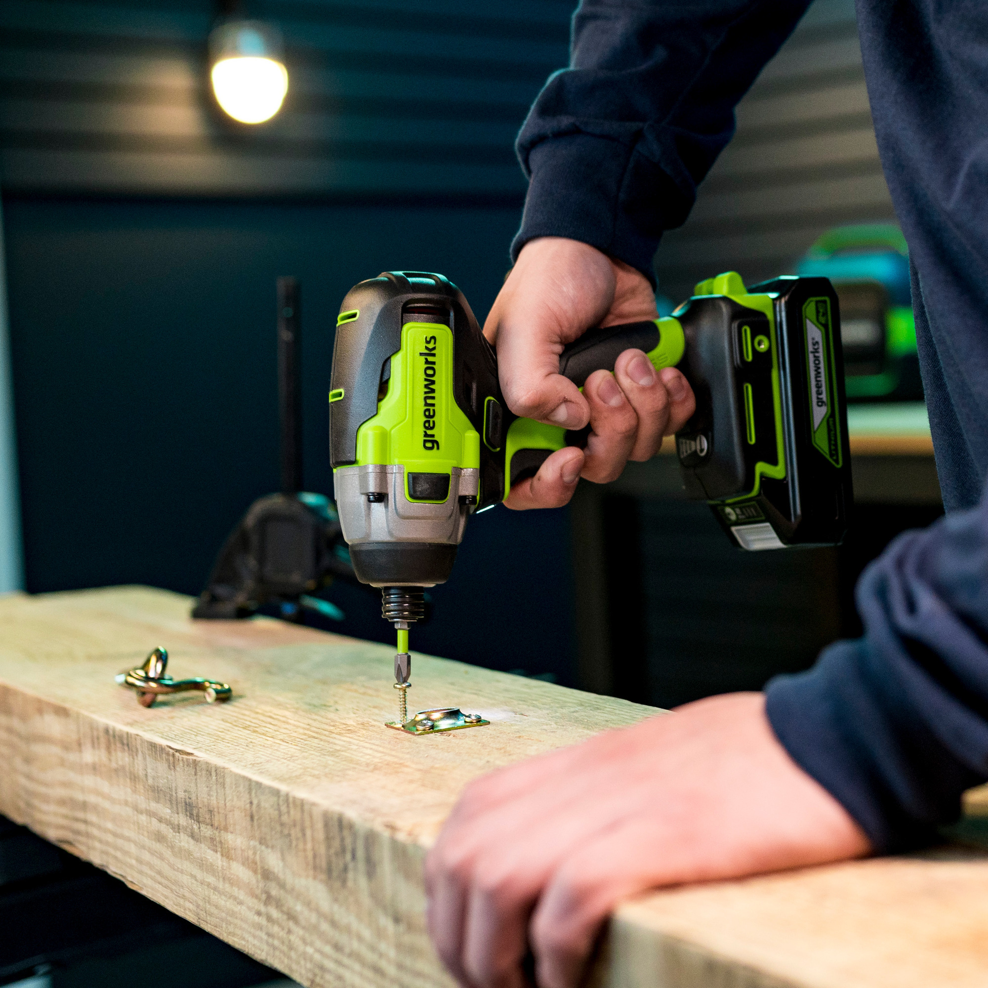 Ударный винтоверт Greenworks GD24ID3 – это универсальный инструмент для заворачивания метизов и сверления отверстий в мастерской или на строительной площадке.